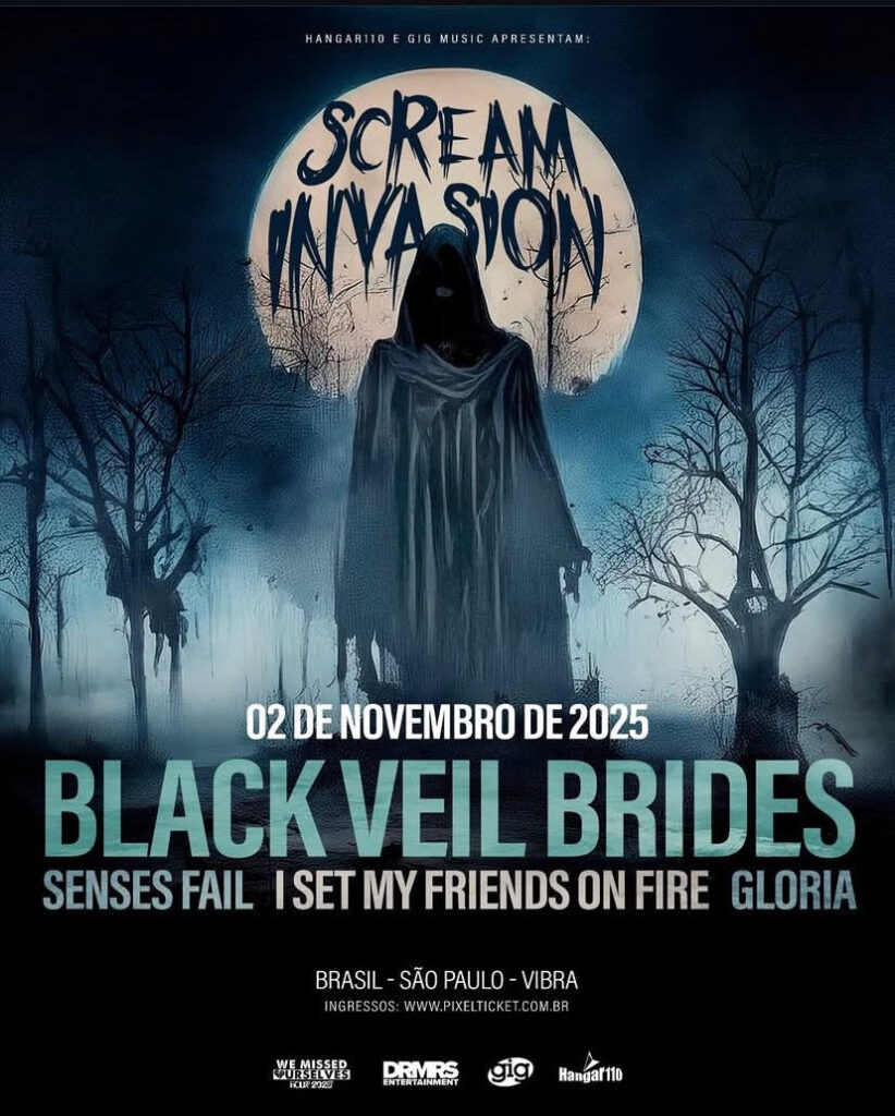 São Paulo recebe um dos eventos mais aguardados do ano para fãs de post-hardcore, metal e emocore: o Scream Invasion, novo festival que acontece no dia 2 de novembro de 2025, na Vibra São Paulo, e promete reunir nomes consagrados da cena mundial. O lineup conta com Black Veil Brides, Senses Fail, I Set My Friends On Fire e a banda nacional Gloria.
