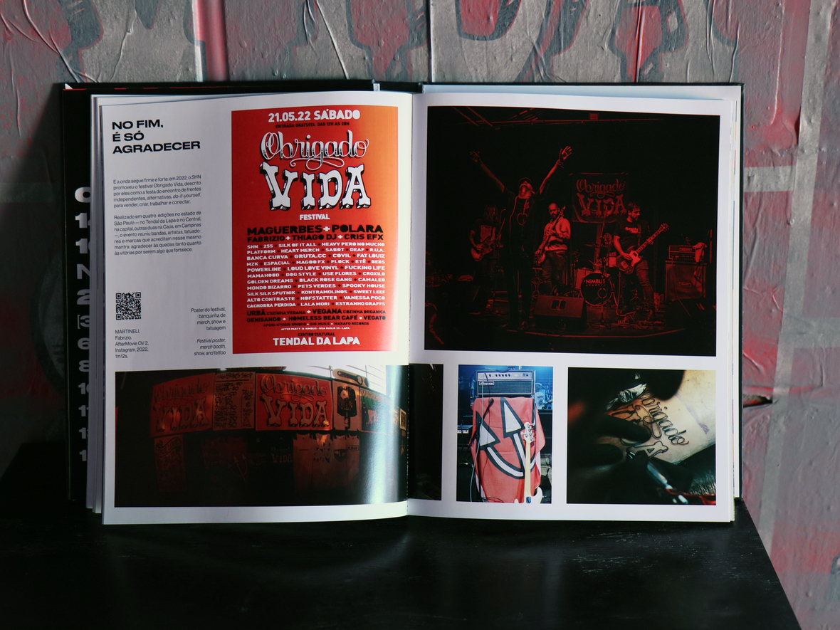 Entre os destaques do livro está a participação do SHN na Virada Cultural de 2023, quando o coletivo criou bandeiras artísticas que ocuparam o Vale do Anhangabaú, celebrando a diversidade cultural das ruas paulistanas.
